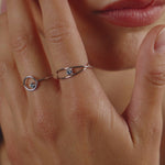 Representing the paths that cross and the stories that merge across time and space: a 0.10ct colored diamond floats between intersecting rose or white golden rings. Our Parallax Ring intrigues and astonishes. Brand bestseller.