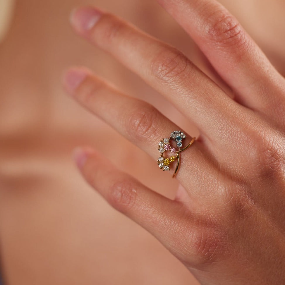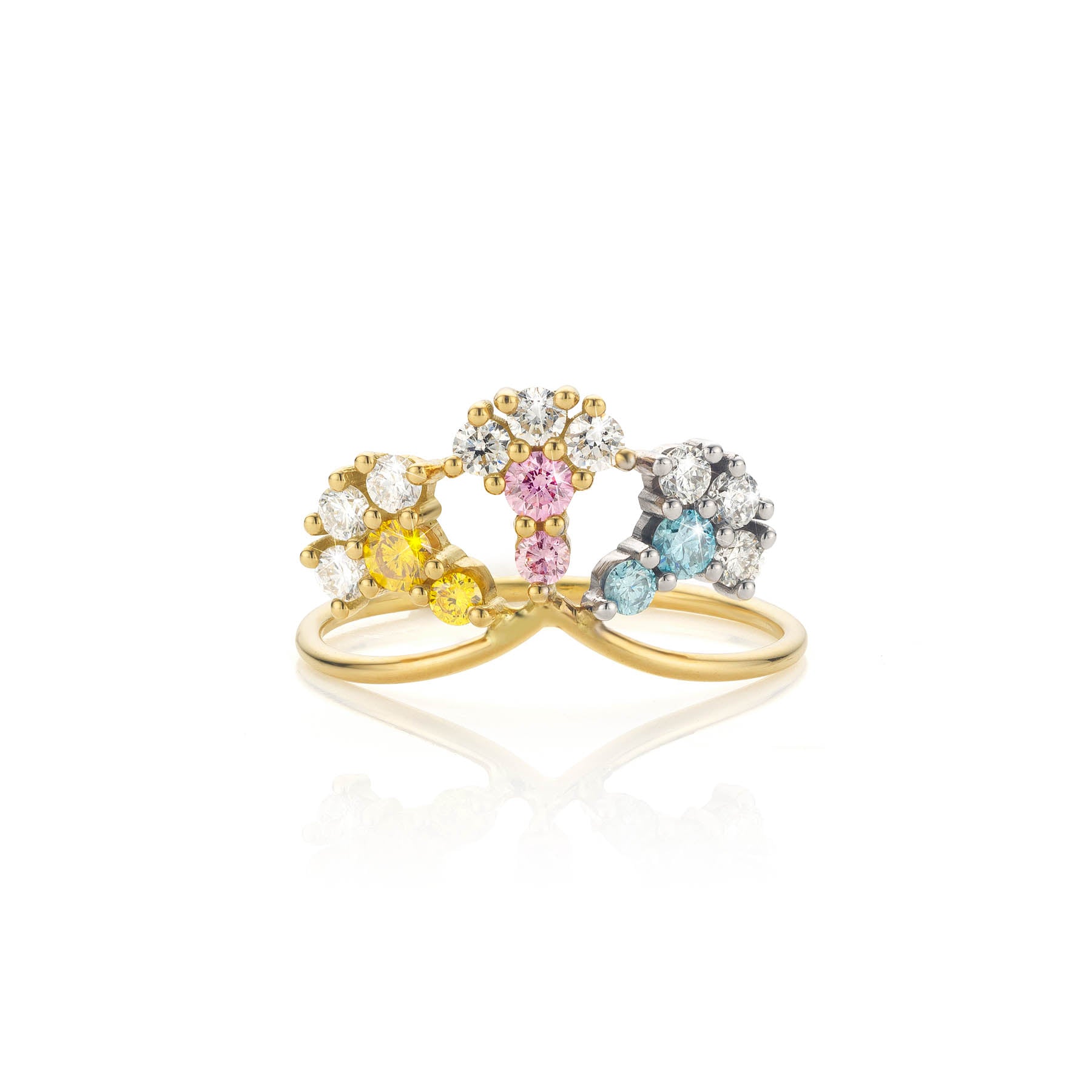 Your choice of yellow or white 18k gold with 0.39cts fancy colored diamonds in hues of yellow, pink and blue accented with 0.27cts of colourless diamonds.