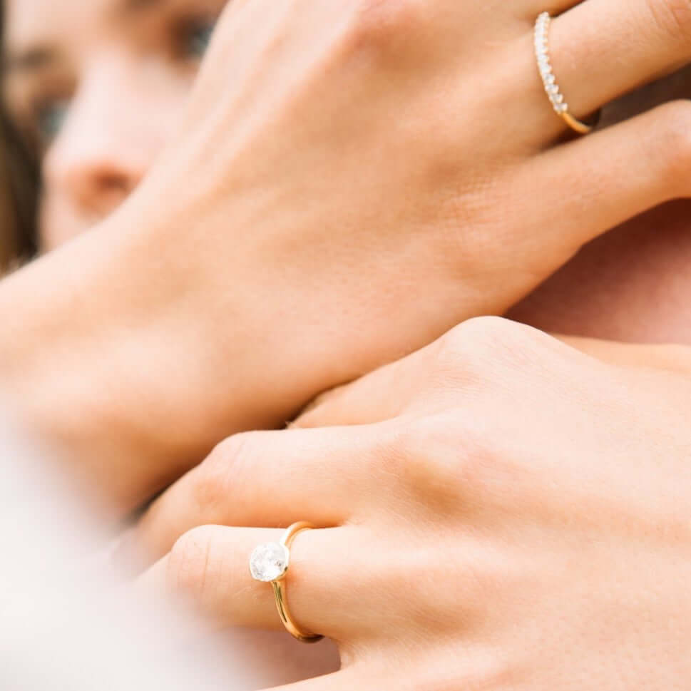We are dedicated to ethical and sustainable production and use only 18k recycled solid gold and lab-grown diamonds of the highest color and clarity. The colourless diamonds we use are of EF color and VS clarity.