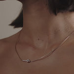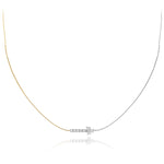 Our Duality collection is a melange of materials that form tiny sculptures that adorn your body. Minimal from afar, visually striking from up close. The Bicolor Necklace features 0.37cts of round brilliant cut diamonds on a 40cm bicolor chain that sits like a second skin on your collar bone.