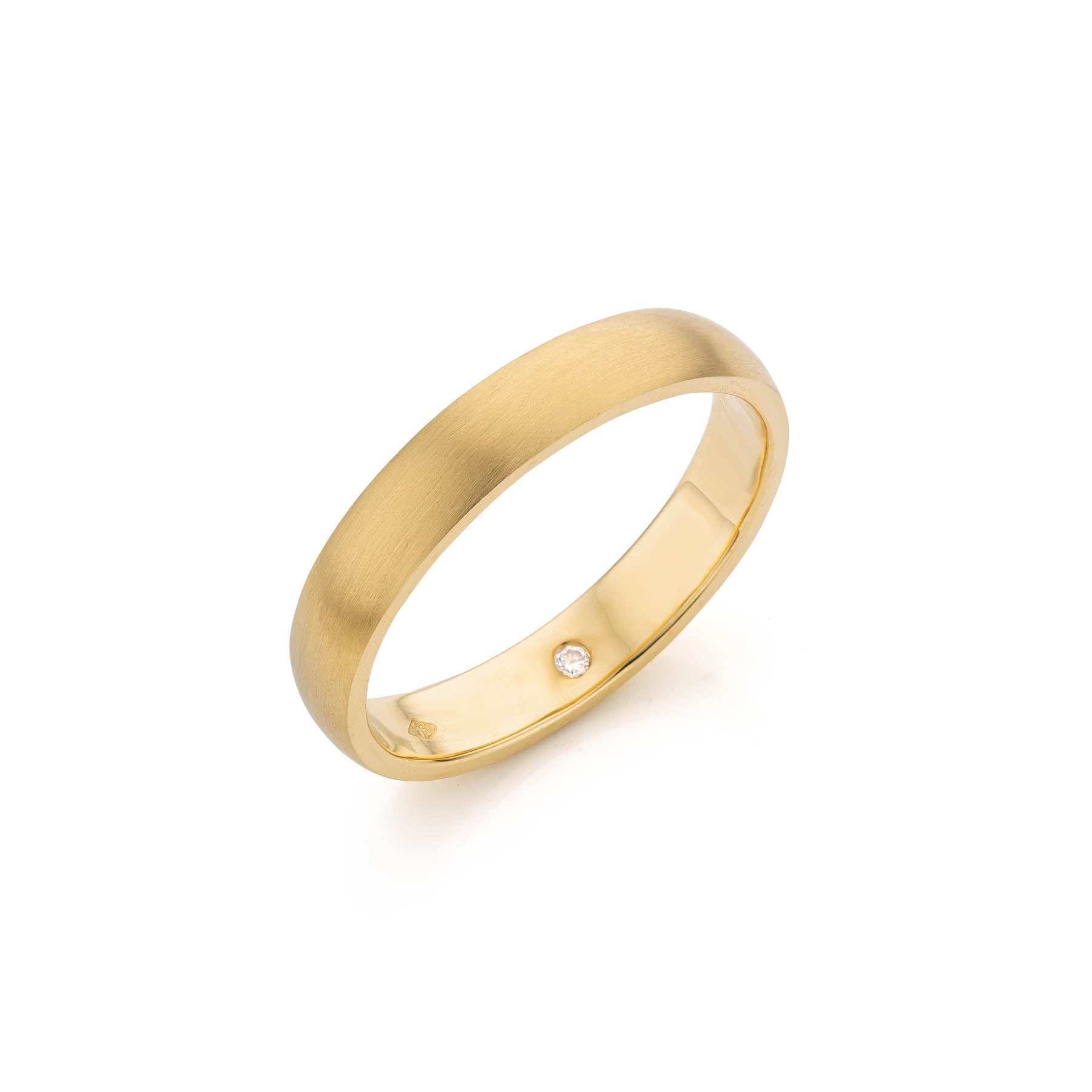 Crafted for comfort from recycled gold with a soft brushed finish. This ring is meant to be an every day companion. With a signature nue diamond on the inside, this ring is your treasure for a lifetime.