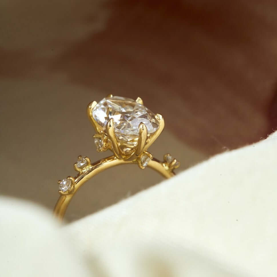 One glance isn’t enough. Our unique Novea Ring will command a second look. The scattered diamonds on the thin 18k gold band symbolise the past, present and future, and float around the brilliant centre diamond. Our ring brings intention and whimsy to every new beginning. This design can be further customised with a variety of diamond shapes and sizes. All of our engagement diamonds are accompanied with a certificate from the International Gemological Institute (IGI) and have a minimum colour of F, minimum clarity of VS1 and are excellent cut. Please include your ring size in the order notes. To schedule an appointment with our team click here.