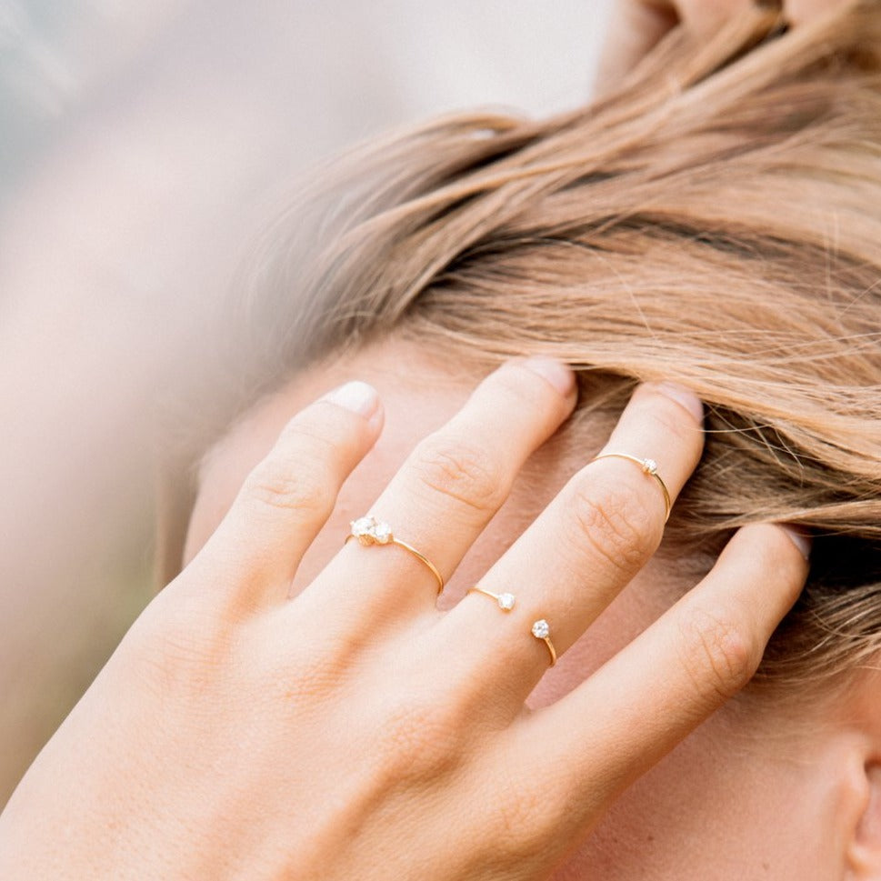 Versatile in its function as a pinky ring or to stack, our Solar Ring is the tiny diamond staple that will complete any ring collection. The diamond weighs 0.03cts.