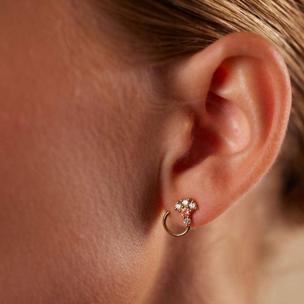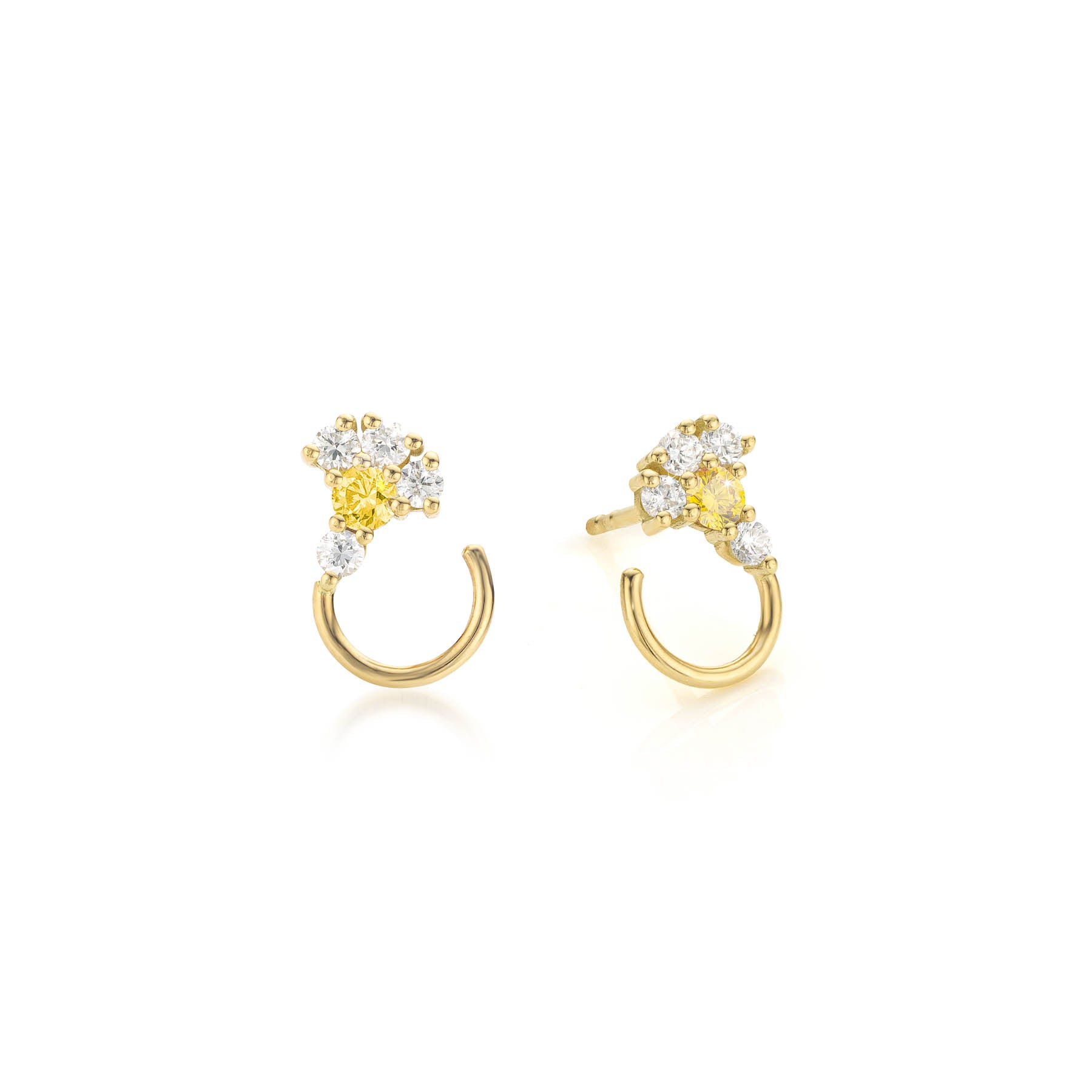 Your choice of yellow or white 18k gold with 0.06cts fancy colored diamonds in hues of yellow, pink or blue accented with 0.12cts of colourless diamonds. Wear at as a single stud or as an everyday pair.